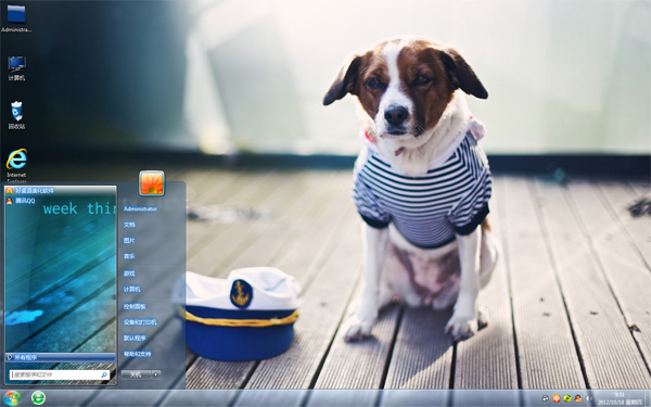狗,听觉嗅觉敏锐,善于看守门户,可训成军犬、警犬等工作用犬,人类主要用它守营护家。这款可爱的W8主题中最可爱的元素就是这只可爱的狗狗了,现在小编就给大家推荐可爱电脑主题下载,这款主题的电脑桌面壁纸是一个可爱的狗狗,穿着条纹的海军服,乖乖的趴在地上的情景呢,桌面上的日历是属于好桌道工具的的,需要下载好桌道才能够使用哦!